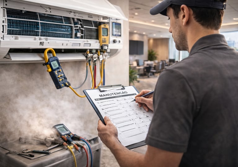 Instalação profissional de ar-condicionado split, multi split e sistemas comerciais, garantindo segurança, eficiência e desempenho ideal do equipamento.